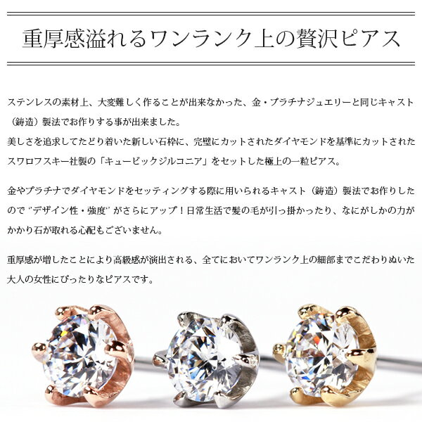[両耳用] ピアス 金属アレルギー対応 ピアス セカンドピアス ファーストピアス メンズピアス キャッチ スタッド 小ぶり 小さめ ステンレス 316L ピアス スワロフスキー キュービック 6本爪 選べる プラチナ ホワイトゴールド ピンクゴールド ゴールド 金 K18 色