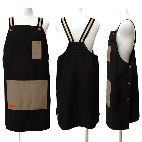 サイドボタン エプロン M〜L ブラック カーキ ネイビー ベージュ 12607 k0905 メール便は送料無料♪