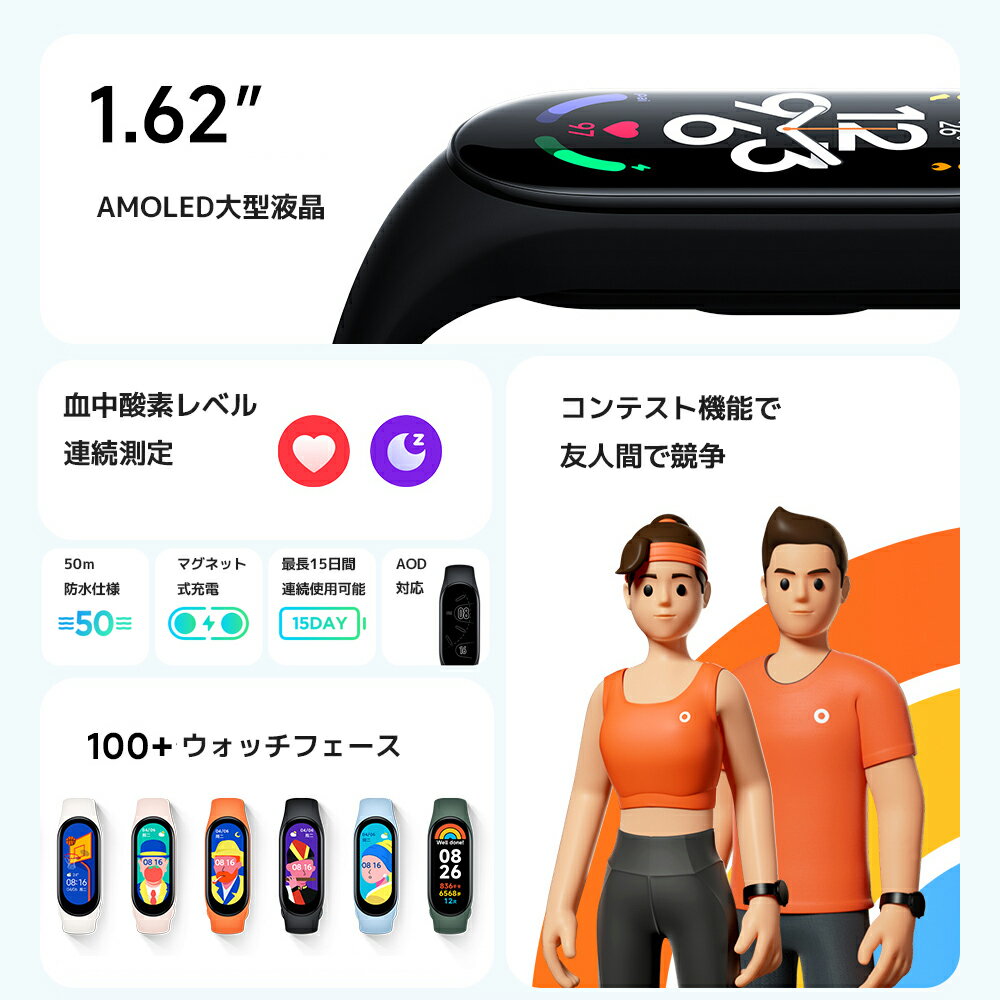 Xiaomi シャオミ Mi Smart Band 7 miband7 smartband7 Mi Fitness 日本語アプリ スマートバンド スマートウォッチ 1.62インチ 326PPI 100段階明るさ調整 大画面 高解像度 血中酸素 健康管理 着信通知 心拍数 5ATM 防水 バッテリー長持ち 睡眠モニタリング 深呼吸トレーニング ストレスモニタリング パーソナルアクティビティ指標 呼吸エクササイズ VO2 最大酸素摂取量 月経管理 100種類以上文字盤 110種類運動モード PAI マグネット充電 磁気充電 無操作アラート 音楽再生 スマートフォンを探す スマートフォンをミュート ポモドーロタイマー 起立モード 電話のロック解除 サイレントモード 懐中電灯 就寝中 マナーモード 天気予報 カウントダウン タイマー カレンダーリマインダー イベンドリマインダー メッセージアラート Bluetooth 5.2 小米 送料無料