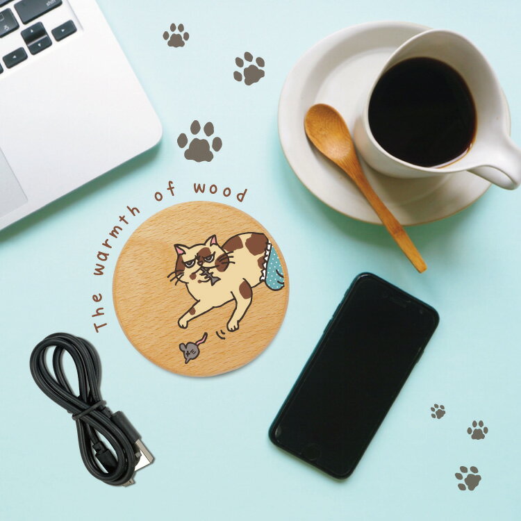 【 20%OFF スーパーSALE 】 ワイヤレス充電器 木製 充電器 置くだけ充電器 ワイヤレスチャージャー iPhone 急速充電 薄型 小型 5w 7.5w 10w 15w おしゃれ アンドロイド 木 Galaxy Nexus LG ウッド 木 猫 かわいい 動物 イラスト