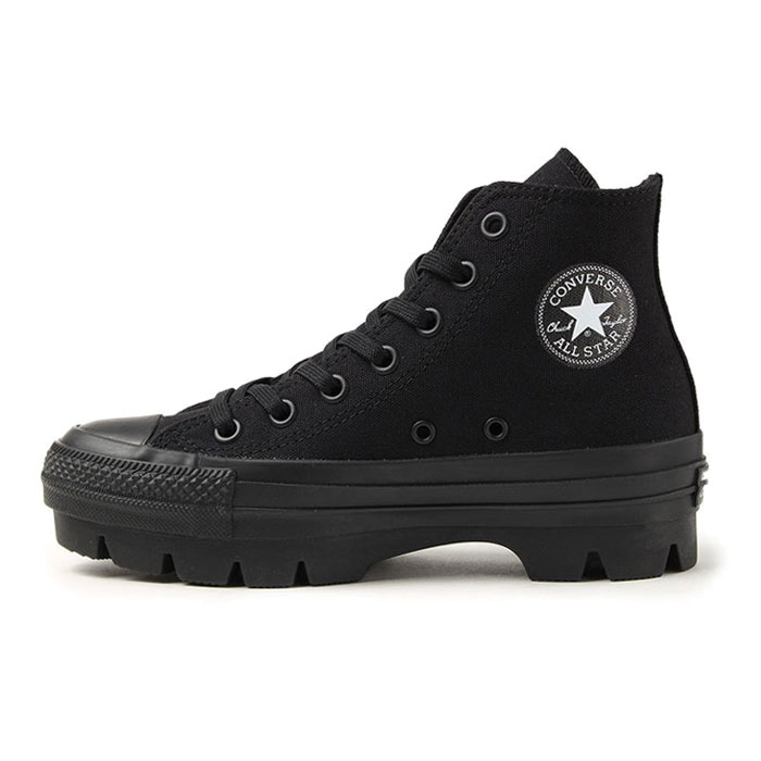 凹凸とアーチの曲線が特徴のラグソールで仕上げたオールスター 100 トレンドのボリュームソールでありながら、ベーシックなカラーリング 通常より踵が約24mm高いソール設計で、足元にほどよいボリュームを演出 アッパーは、水が浸みにくく、汚れも付きにくい撥水キャンバス仕様 アッパー:キャンバス ソール :ラバー